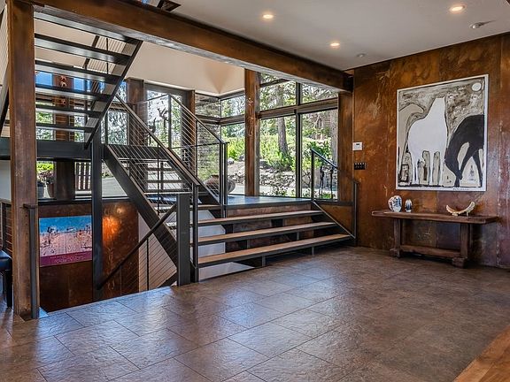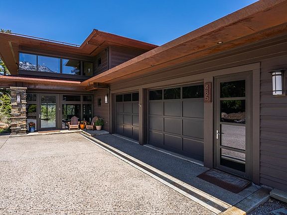 Take a walk in the clouds from the comfort of your living room in this custom designed 4000’ sq. foot modern architectural home. Located in the coveted Bluffs neighborhood, this chic departure from the more traditional mountain style home, with its steel beams, floor to ceiling windows, and panoramic views of Mammoth Mountain, the Town of Mammoth Lakes, and the epic Eastern Sierras, is an enticing option for those looking for an elegant alternative to the rustic cabin experience. Minutes to Eagle Lodge and the Lakes Basin, it’s a sportsman’s paradise in an unparalleled location. Enjoy star filled evenings beside the outdoor gas fireplace with one of the most majestic views in the Sierras, or relax in the hot tub on cold winter nights. This multi-level property comes partially furnished, and the expansive walls are a perfect place to display your art collection. The builder had an eye for detail, bringing nature into the home by incorporating a massive boulder into the living room in this Frank Lloyd Wright inspired design. With 3 bedrooms plus a loft, 3.5 bathrooms, and 3 fireplaces, there are endless environments to spread out and relax in. The primary bedroom suite will make you feel like you are sleeping in the forest with its own private deck, sweeping views, private fireplace, and spacious bathroom with an immense steam shower. Downstairs can be used as a separate suite with 2 bedrooms and baths, one with a steam shower, the other including a jacuzzi tub. It also features a den, office, fireplace, and kitchenette. A heated garage completes the property with extensive storage and loads of built-ins for all your outdoor sports gear. Don’t miss out on this rare opportunity to own a mountain modern home in a stunning natural environment that inspires awe in everyone who sees it!