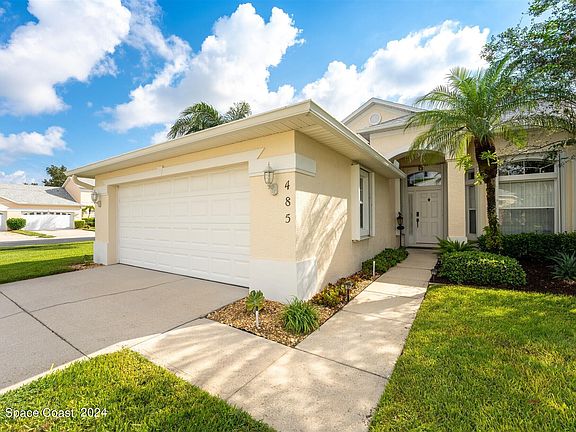 The large primary ensuite bedroom includes a spa-like bathroom and walk-in closet. On the opposite end of the house an additional two bedrooms and bath provide privacy for guests or family members. Laundry with sink and washer and dryer included. Pristine garage with epoxy flooring and ample cabinetry! Attic access for additional storage. A few of the upgrades and special features include: Vinyl plank flooring, new ceiling lights and fans, new knobs on all doors and cabinets, new door hinges, interior painting, accordion storm shutters. The low-maintenance community is gated and just a short walk to the community pool and cabana. HOA includes exterior painting, roof repairs/replacement, pool, lawn service, irrigation system, lawn fertilization, gate, termite bond, exterior insurance, and reserves for roofs, roads, pool, exterior painting and gate.