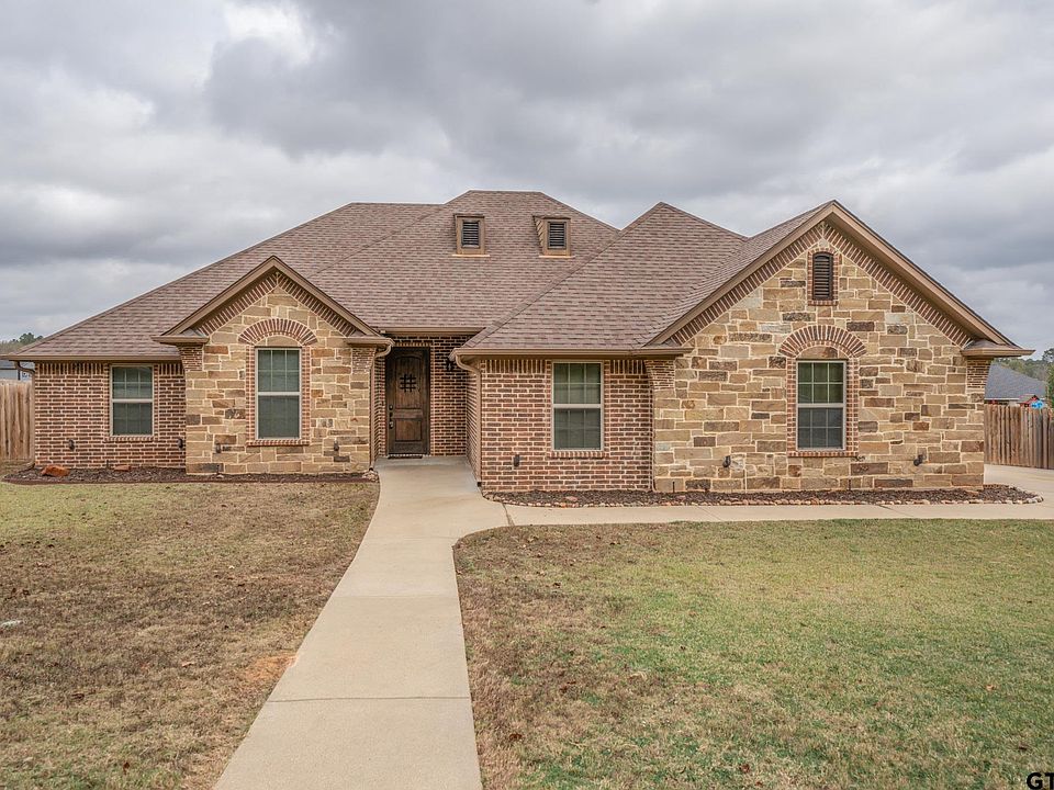 Discover this inviting 4-bedroom, 2-bathroom home offering 1,957 sq ft of living space on a .52-acre lot in the desirable Hallsville area. Enjoy an open-concept layout where the living room, dining area, and kitchen flow together seamlessly. The living room features a woodburning fireplace, creating a warm and cozy focal point for the space. The open kitchen offers ample countertop space and a walk-in pantry, providing excellent storage and functionality. The primary suite offers an open design with double sinks, a relaxing soaking tub, and a walk-in shower. Additional bedrooms provide flexibility for guests, kids, or workspace needs. Step outside to a large backyard complete with a covered patio, perfect for outdoor relaxation, gatherings, or playtime. Located in Hallsville ISD and close to local conveniences, this property offers comfort, space, and a fantastic layout—inside and out!
