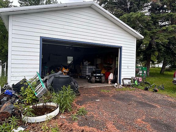 - Parking features: RV Access/Parking, Detached, Garage: Heated, Insulated, Sheet Rock, Work Shop, Opener, 220 V, Oversize Door, Lights, Driveway: Gravel