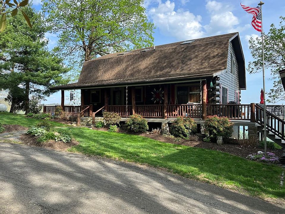 Beautiful Cabin with spectacular Piedmont views located in the gated Hilltop Subdivision right off the Blue Ridge Pkwy. Home features: 1458 sq. ft. 2 Bedroom, 2 Baths, but what sets this property apart from others is the custom designed kitchen featuring granite countertops, custom backsplash, kitchen island, barn wood custom cabinets and slate flooring that is a must see. Kitchen was featured on Houzz.com. This open floor plan also features dining and living room areas with piedmont views, stone gas log fireplace, exposed beams, bedroom, and full bath on the main level. On the 2nd level you have another bedroom and full bath. Home also has half basement for plenty of storage or could be finished into additional living sq. footage. Exterior Amenities features nice landscaping, front covered porch with a full wrap around deck to enjoy the 60-miles piedmont views. Property also features a 2 vehicle Carport and circle drive. Beautiful sunrises and the views are amazing in all 4 seasons.