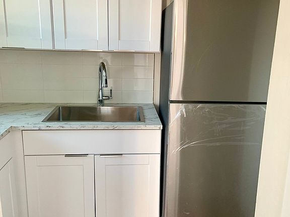 Starts off with small living and dining area with nice size windows, and separate cozy bedroom with built-in closet. Followed by modern white kitchen with new stainless steel fridge, and bathroom with large subway tile and the latest finishes. AC + utilities included!