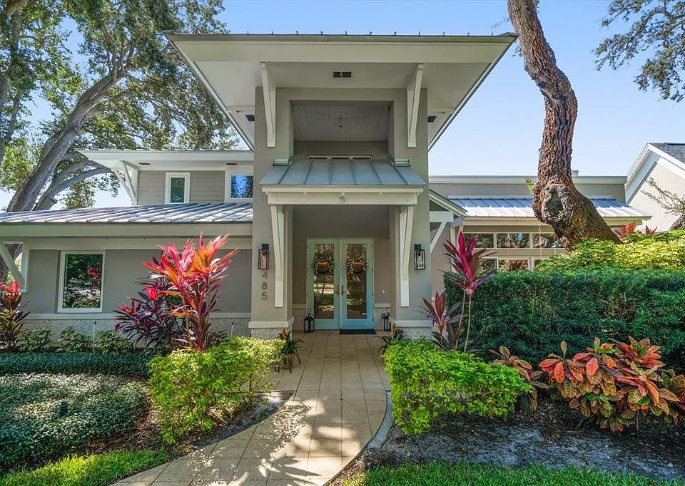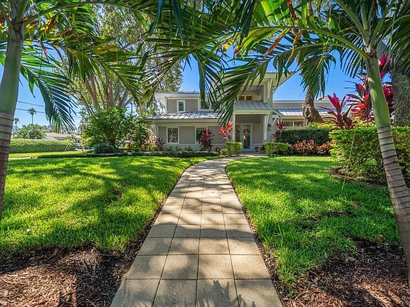 Luxury Coastal Living on Prestigious Park Avenue. Experience refined Belleair living in this Key West–inspired masterpiece, perfectly positioned in one of Belleair’s most sought-after streets. Completely rebuilt in 2010 and thoughtfully updated in 2022, this move-in-ready home combines timeless elegance with modern sophistication. Boasting nearly 3,000 sq. ft. of impeccably designed space, the residence features 4 spacious ensuite bedrooms, 4.5 baths, and an open-concept layout ideal for both everyday comfort and elevated entertaining. Situated 50 feet above sea level with hurricane-rated windows and doors, this home offers peace of mind—no flood insurance required. Step through the grand two-story foyer into a light-filled Great Room showcasing a 12-foot fireplace wall, floor-to-ceiling sliding glass doors, and a striking floating staircase—a stunning architectural focal point. The chef’s kitchen impresses with custom cabinetry, granite countertops, an oversized island, Viking gas cooktop, and high-end appliances. Entertain effortlessly with a custom wet bar and beverage room, featuring integrated lighting and sleek granite finishes. Retreat to the luxurious primary suite, completely remodeled with designer lighting, dual vanities, soaking tub, spa-style shower, and a custom walk-in closet. Step onto your private balcony to enjoy serene sunset views. Your outdoor oasis awaits—complete with a PebbleTec pool, heated spa, covered lounge area, and lush tropical landscaping for total privacy. Additional highlights include a metal roof, oversized two-car garage, energy-efficient HVAC with UV filtration, custom closets, alarm system, and a new hot water tank. Just one block from the prestigious Pelican Golf Club and one mile from Belleair Country Club, this residence offers exclusive access to world-class golf and country club amenities. With its architectural charm, designer finishes, and unbeatable location, this Belleair gem perfectly blends luxury, comfort, and coastal lifestyle.