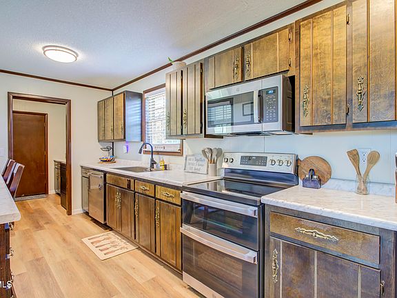 Barn and shedsGorgeous mountain viewsDetached garageAll brick-ranch style homeOne level livingKitchen and bathroom remodelsNew flooring