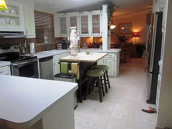Fully renovated, 2,108 SQ FT, 1993 Palm Harbor. 3/2 with a lake view, beautiful landscaping, golf cart garage and new flooring and paint throughout. The large eat-in kitchen has newer appliances including a stainless steel French door refrigerator and recently renovated cabinets and counter tops. The master bedroom has overhead storage and the master bath has a walk-in shower. The family room is huge and has upgraded insulation plus heat/air. TERRIFIC HOME - YOU MUST SEE! Over 700 homes available at http://www.fourstarhomes.com