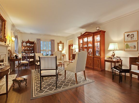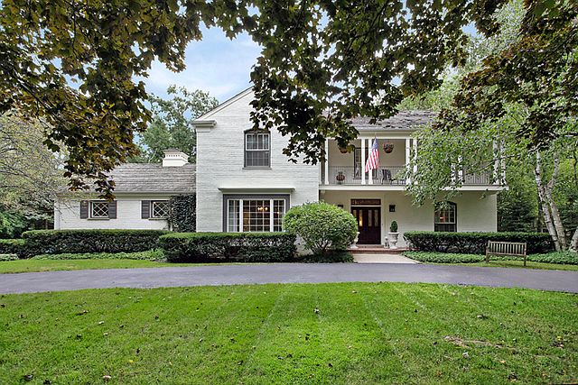 Classic, brick Colonial situated on a beautiful wooded and private acre lot in sought after Villa Turicum. Great family neighborhood, close to town, schools and transportation. Step inside to a gracious two story entry foyer with marble floors and formal staircase. Formal living room with fireplace and hardwood floors. Generously sized formal dining room with hardwood floors and pretty bay window. Family room with fireplace, warm wood paneling, beamed ceiling, built-in cabinetry and access to patio. Updated eat-in kitchen with white cabinetry, granite counters and stainless appliances. Nice breakfast area with patio access. 9' ceilings most 1st flr. rms. Lovely master suite with en suite bath and walk in closet plus access to private balcony. Three additional family bedrooms, (hardwood under carpet), and two full baths complete the second floor. Gorgeous yard with brick paver patio. Finished lower level. 1st flr laundry. Home has been very well cared for but being sold in AS IS cond.