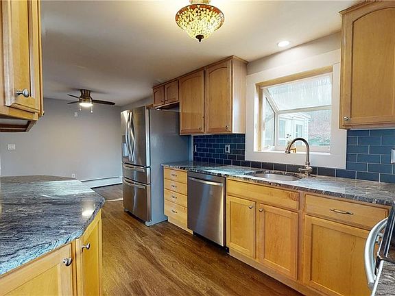 Located in a private country setting, this beauty is ready for its new owners. Single level ranch with 3 bedrooms, 1 bath with full size stand up shower. Updated kitchen with granite and tile backsplash. All stainless steel appliances including refrigerator, dishwasher and microwave. Durable laminate flooring is located throughout the kitchen and living area. Large living room faces the front of the house with a nice picture window and large enough for a sectional, television and more. BONUS of a 352sf 4-season room off of the main kitchen, adorned with plenty of windows for natural light. The possibilities are endless! Fully finished basement with walk out gives you the feeling of New Hampshire living! Large open space, working wet bar and a half bath. Utility room is great for storage. Vinyl sided and offers a lot of privacy. Driveway can fit many cars and house is nicely hidden from the street. This one is a keeper!