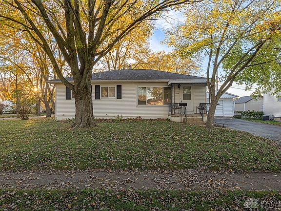 Welcome to this charming ranch style home featuring 3 bedrooms, 1 1/2 baths, finished basement and one car garage. Step up onto the covered porch and into the spacious Living Room featuring large windows with lots of natural light. This room is carpeted with original hardwood floors underneath. The eat in kitchen features woodgrain ceramic floors and comes with range and refrigerator, pantry, and a pocket door. The three nice sized bedrooms offer vinyl windows, fresh paint and hardwood floors. The full bathroom features a Bath Fitters shower, newer toilet, newer ceramic floor tile and fresh paint. The basement has waterproofing from Everdry, finished family room, bonus room with half bath, and glass block windows. A laundry room with washer, dryer, and utility sink, workshop, HVAC, gas water heater and extra storage complete this level. Outside is an oversized one car garage, a large, covered patio and a fenced backyard. So much potential on this large corner lot with extra concrete pad. This home is located near WPAF Base, The Greene, Fairfield Mall, highways, shopping and restaurants. Don't miss this special home! AGENT RELATED TO SELLER.