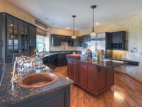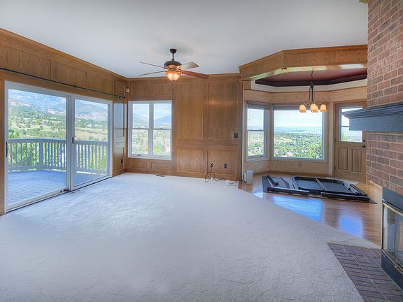 Beautiful Cheyenne Mountain area home with INCREDIBLE views! Main level has formal dining and living room with fireplace and walk out to deck. Family room has fireplace and adjoining breakfast area with walk out to very private deck. Kitchen with stainless appliances, slab granite, island, wine fridge and desk area. Master bedroom is on the main level and has 2 walk in closets, en-suite bath with double vanity, separate shower and soaking tub. Master also walks out to the back deck. Half bath and large laundry room with additional storage also on main level. The upper level has three additional bedrooms. One has a private bath and the other two share a Jack & Jill bath, each with their own vanity and walk in closet. The lower level has an additional family room, 3 additional bedrooms and an exercise room with a dry sauna. Family room walks out to a private deck. This is truly a perfect family home, large and gracious with unmatched views! Ask about pets and no smoking please.