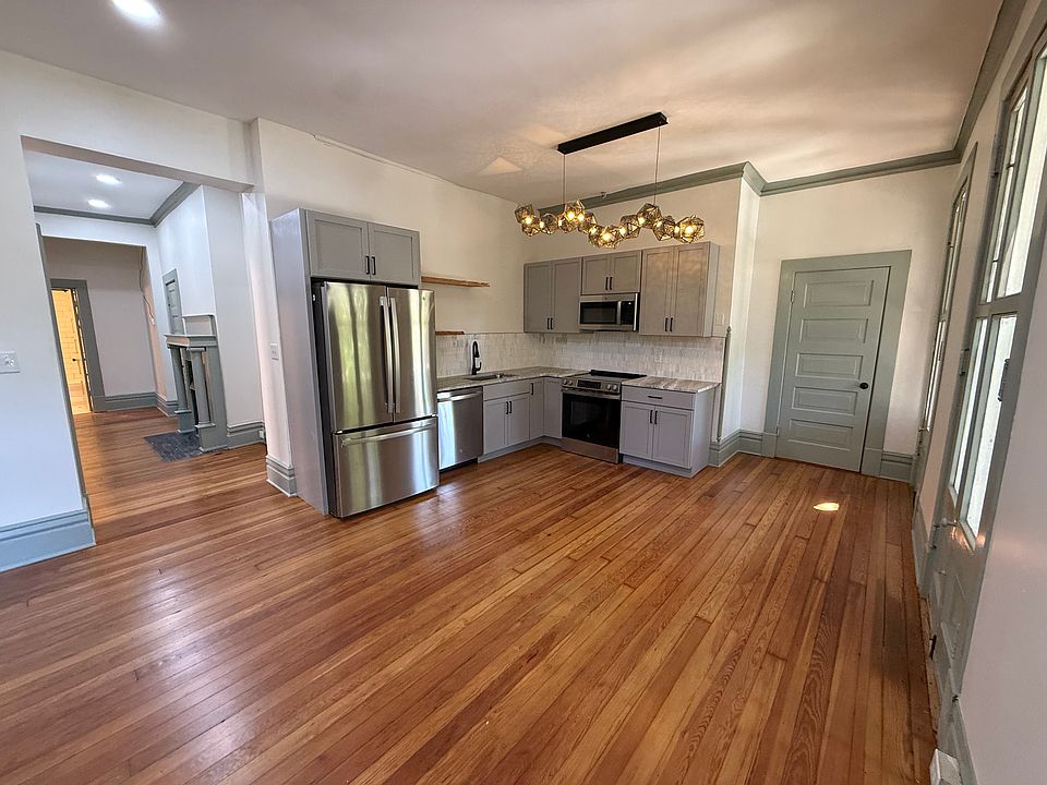 Refinished hardwood floorsPrivate balconyFully updated kitchenOverlooking third street