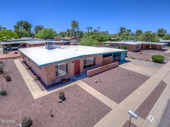Great location in the heart of Tucson and nicely updated! Newer dual pane windows,newer roof and HVAC too. The kitchen is open to the Dining Room with Stainless Steelappliances, granite countertops and a beautiful backsplash. Both baths are updated as well. One of the bedrooms has attractive built-in shelving, cabinets and drawers whichmakes it ideal whether for a bedroom or office. The outside space is private, large andinviting with a spacious covered area and a large storage cabinet, which has a great workbench. Plenty of low maintenance desert landscaping too. Roof recently rerolled and the warranty is transferable. Come and see this one today!