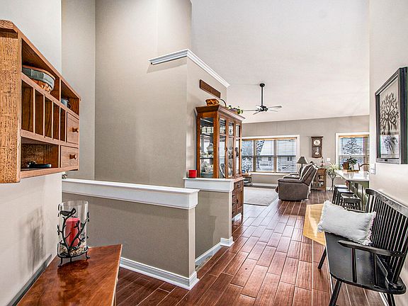 Welcome home to this inviting Portage ranch offering main-floor living and fantastic entertaining space inside and out. The open-concept living room, dining area, and kitchen feature vaulted ceilings. The kitchen includes a large center island, maple hardwood floors, new quartz countertops (2025), and stainless steel appliances. The main floor offers 3 bedrooms which include a primary suite with an ensuite bathroom and walk-in closet as well as 2 additional bedrooms and a 2nd full bath. Wood-grain tile flooring runs throughout much of the main floor, adding both style and durability. The finished walkout basement is made for gatherings with a cozy fireplace, built-in bar, and a finished craft room or office. The lower level is also plumbed for a future bathroom. Enjoy the partially fenced in back yard from either the covered upper deck or the walkout lower level. New landscaping (2025) adds to the great curb appeal. Schedule your showing today!
