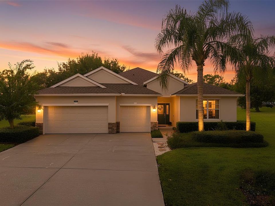 Under contract-accepting backup offers. Located in the desirable guard-gated community of Stoneybrook Hills, this beautifully maintained 4-bedroom, 3-bath home offers a bright, open layout perfect for entertaining and everyday living. The home features both a formal living room and family room, along with a spacious kitchen that includes a breakfast bar, eat-in area, and separate formal dining room—providing plenty of seating for family and guests. The primary suite showcases tray ceilings and crown molding, while a second ensuite bedroom is ideal for guests or multi-generational living. Updates include new recessed lighting, updated ceiling fans, fresh paint inside and out, bidet toilets in all bathrooms, a new roof (2023), new HVAC (2023) and water heater (2025), plantation shutters, a modern kitchen backsplash, and a whole-house water filtration system. Set on an oversized 0.42-acre lot with a 3-car garage, residents also enjoy resort-style amenities including an Olympic-sized pool, clubhouse, fitness center, tennis and pickleball courts, and more—all with low HOA fees. Conveniently located near downtown Mount Dora and the 429 for easy commuting. Seller offering $8,000 toward buyer’s closing costs, prepaids, or rate buydown with an accepted contract.