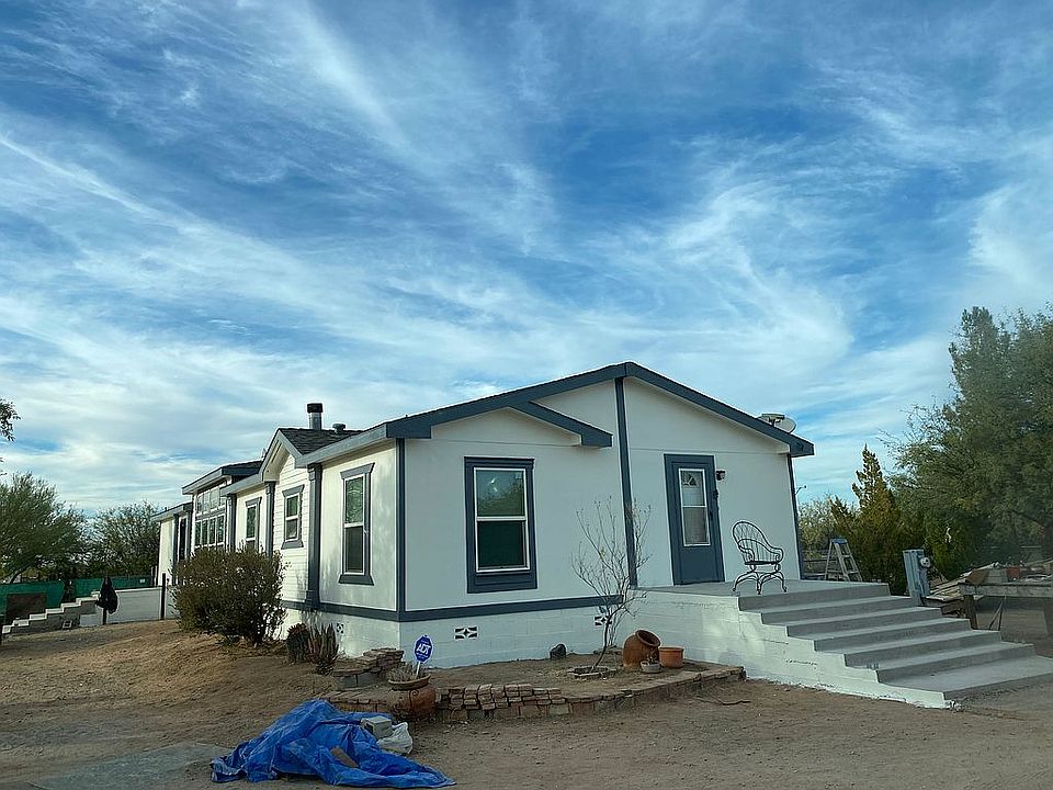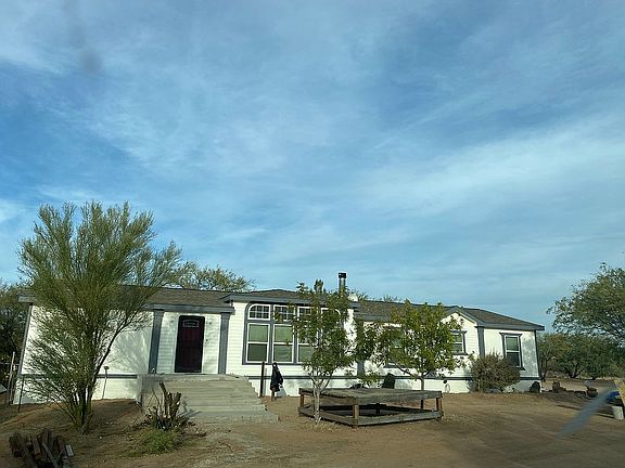 Manufactured home on 4 acres of fenced property. Shared well water, covered parking, large metal 2 car garage, fenced horse corral, fruit trees and garden and storage sheds. New carpet, new vinyl flooring, fire place, interior and exterior paint.
