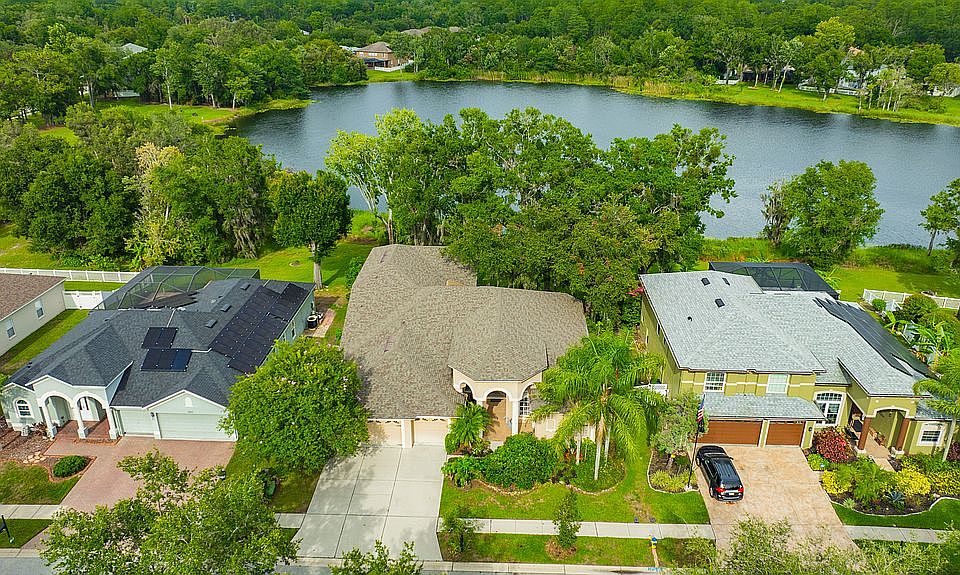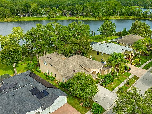 UNIQUE SPRINGFED LAKE VIEWS with conservation area across the lake offering the ultimate in privacy. 4-Bed, 4-Bath, with oversized bonus room that can be used as a 5th bedroom. 3,182 sq. ft. Welcome to your dream home in the heart of Land O Lakes. The custom finishes and generous storage make this luxury home a one of kind rare find. The lake views can be seen from nine rooms in the home including the kitchen, breakfast nook, great room, master bedroom, entry, office, and upstairs bonus room. Crown molding throughout. Double hung closets maximize space. The kitchen has premium enhancements including a pantry, granite countertops with upgraded edging, a custom refrigerator that matches the solid wood cabinets and a reverse osmosis system. The primary suite is a true sanctuary accommodating a king size bed, a beautiful entry, and two sizable his and hers walk-in closets. From the primary suite you will wake up to a view of the sunrise on the lake. Two different laundry hookup locations are optional, both indoors, either in the mud room area as you walk in from the garage if you prefer, or in a downstairs bdr just off the mud room which has currently been renovated into a large multi-purpose craft room with laundry room hook up. So much storage including a 3 car garage. Everything in this home has been well thought out. The bonus room upstairs is an exceptionally large room, basically 2 rooms in one, which overlooks a panoramic lake view. Even more storage is found here with a spacious walk-in closet. This multi-purpose bonus room has it's own bathroom, it's own private rear entrance, and a separate thermostat with it's own air conditioning/heating unit providing flexibility to cool the downstairs main living area separately from the upstairs bonus room/bdr on two different units. New roof in 2022, new water heater in 2023, and new outdoor air conditioning unit in 2025. Low HOA fees and no CDD! Step outside into a yard with the perfect orientation for outdoor living with the back yard oriented to the cooler side of the house which is east. The back yard has mature oak trees which render shade and a breeze of the lake. This home provides the perfect wildlife refuge for those who enjoy watching both water and land birds, entertaining, or simply relaxing with nature. The landscape is customized for privacy and bringing the outdoors in with strategically placed trees which frame the views and invite wildlife to your property. The gated community has easy access to Hwy 41 through the front gate or a backroads cut through which can take you conveniently out through nearby Oakstead onto Hwy 54. The Hawaii-like breeze off the lake leaves this home feeling more like a vacation home while providing all the comfort, upgrades, and style of a year round home. This one won't last long. Don't miss the opportunity to own this one of a kind home.