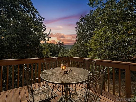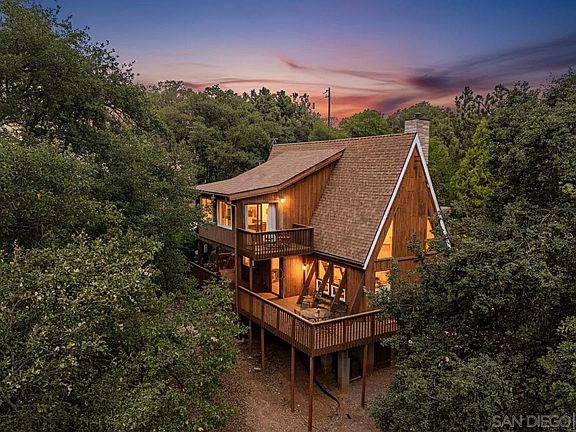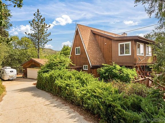 Enjoy this mountain Cabin, within short walking distance to the multi-use hiking, biking, and equestrian trails at William Heise County Park. The property is .79 acres, fully fenced, and the cabin features two comfortable decks: a private deck off the upstairs bedroom and a large, family-sized deck with plenty of room for entertaining, conveniently located off the kitchen. From here, you will enjoy peaceful mountain views and ample space for your pet to run. Inside, you will find a cozy living area featuring a large fireplace, cedar siding, vaulted ceilings, and tall windows that provide ample natural light. The home features two official bedrooms and two optional bedrooms, as well as a detached two-car garage that includes a weight room. Stay comfortable with forced central heating and air conditioning, plus a Generac generator for reliable power back-up when needed. The current owners have cherished this property and raised their young, happy children here from elementary school through to adulthood, forming many precious memories. Outdoor features include mature apple, cherry, and apricot trees, as well as grapevine, strawberry plants, and mint. You'll find horse shelters, an area for a small flat riding arena, a tack room, a chicken coop, and a goat shelter as well. The property also backs up to Heise Park, offering great riding trails. Zoned for agriculture, this property allows for a variety of home farming activities. It's ideal for those seeking to cultivate their own food and raise animals.