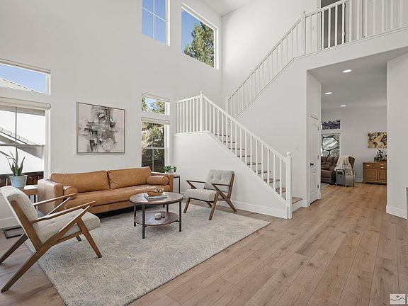 Serenity awaits at this updated gem in the Creek Ridge Development of Caughlin Ranch. Dramatic windows let in tons of natural light and offer fantastic mountain views. New 5" luxury vinyl plank flooring and baseboards (throughout) are stunning, and the kitchen is equipped with granite slab, a KitchenAid built-in oven, a new Bosch dishwasher, and a fridge that makes amazing ice balls for your favorite beverages! The back yard is lush with all new sod, a canopy of mature trees, and a generous paver patio., The mechanical systems are running great with a furnace that was replaced in 2023, a 2017 water heater, and an AC unit that was serviced this summer. Surrounded by miles and miles of paved walking trails, year-round creeks and ponds, and some of northern Nevada's best hiking and biking, Caughlin Ranch is a highly desirable neighborhood zoned for three of Reno's best public schools and close to shopping, Village Green Park, and Caughlin Athletic Club.