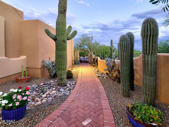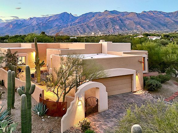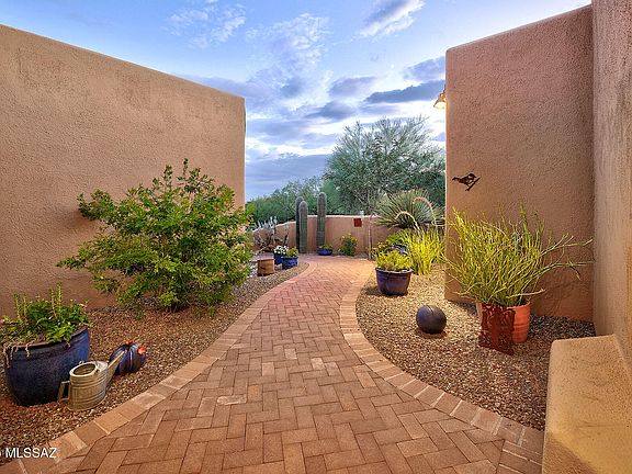 Perched high in sought-after Las Alturas, this stunning 3,226 sq. ft. residence offers refined desert living at its best. Enter through a charming, private courtyard and step into a home designed with both elegance and comfort in mind. The expansive living room boasts soaring 10-foot ceilings and walls of windows that flood the space with natural light, while the formal dining room provides the perfect setting for intimate gatherings. Newly recoated roof w/2 year warranty, newer HVAC system. The beautifully remodeled kitchen is the true heart of the home, featuring a generous center island, breakfast bar, and eat-in area, all opening to the spacious family room or separate den, ideal for entertaining.The split floor plan ensures privacy, with the primary suite offering a peaceful retreat complete with ensuite bathroom with jetted tub, walk-in shower, and custom walk-in closet. Step out from the suite to the covered patio and take in expansive views of the Santa Catalina Mountains. Guest quarters feature a private ensuite bath, while the additional bedrooms share a stylish hall bath.