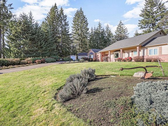 Nestled on a sprawling .97-acre lot, this custom built home offers an unparalleded living experience with its breathtaking territorial views of the valley & Mt. Hood. Boasting 2785 sq.ft. of living space, this residence is designed to provide both comfort and luxury,with a harmonius blend of modern amenities and timeless elegance. The home features 3 generously sized bedrooms & 2.1 baths, thoughtfully laid out to maximize space and functionality. The 10 foot ceilings throughoout the main living area create an open & airy ambiance. There are hardwood floors through out with the exception of the 3 bedrooms and a sprinkler system inside and out. The large primary bedroom is a true sacturary, complete with a bay window that frames the fantastic view. The heart of the home is the expansive kitchen, designed to delight any culinary enthusiast. Equipped with stainless appliances, cherry cabinets, and granite countertops w/tile backsplash. The large island with an eating space provides for meal preparation and casual dining while the dual wall ovens and stove top offer versatility for any cooking endeaver. The garden window invites natural light. The dining room features hardwood floors with access to patio. Office/den, accessed through French doors, includes a built-in desk. The laundry room is designed for convenience and efficiency, featuring a sink, cabinets and a broom closet. The exterior of the home is clad in cedar with brick accents. The 40 year architectural roof promises longevity and peace of mind. The concrete driveway leads to an attached 800 sq.ft. finished garage which incudes a storage area.Additionally, there is a separate 2-car finished garage with with heat and plenty of room for a workshop area. An additional 1-car metal garage provides more storage options. There is a garden house that includes a potting area, storage area & space for well equipment. The 400 sqft porch/patio at the front & back of the home, along with an additional patio.