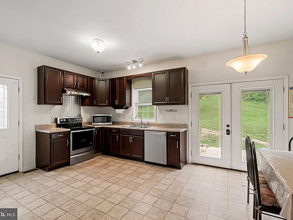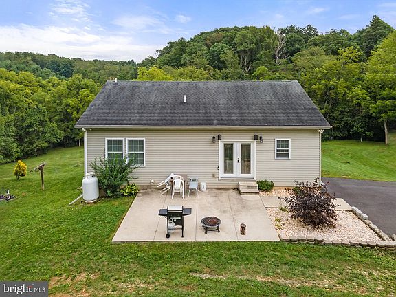 Welcome to this charming and well-appointed home, nestled on a picturesque 5.36-acre lot that perfectly combines modern convenience with serene country living. This expansive property features a meandering creek along the side and front of the home, creating a tranquil setting and offering excellent opportunities for nature enthusiasts, including the possibility to hunt for deer right on the premises. The residence includes a spacious, heated and cooled garage, ideal for year-round use, with additional parking conveniently located next to it. Out back, you'll find a large concrete patio, perfect for outdoor gatherings, along with chicken coops, a sizable shed, and a smaller shed for storage or hobbies. The property is well-equipped with an owned propane tank serviced by Anderson Company, and it also features reliable T-Mobile wireless internet. Electric service is provided by Potomac Edison, and there are two satellite dishes available for use if needed. Inside, the home boasts a comfortable and functional layout. The main level includes three bedrooms, each with cozy carpeted flooring, and one full bathroom. The living room features beautiful hardwood floors, while the kitchen is adorned with durable linoleum flooring and is equipped with stainless steel appliances, including a washer, refrigerator, stove, microwave, and hood. A handy pantry and a large dining area make this space ideal for family meals, and a garbage disposer adds to the kitchen’s convenience. The full bathroom on the main level is stylishly appointed with linoleum flooring. The basement provides additional living space, with carpeted steps leading down to a cozy area featuring both carpet and luxury vinyl flooring. This lower level includes a full bathroom, an extra bedroom, a laundry room with a reverse osmosis system, and a water heater installed in 2021. The home’s heating is provided by a central electric heat pump, ensuring comfort throughout the seasons. An elegant chandelier graces the main living space, adding a touch of sophistication. The exterior of the home is decorated with white stones and features speakers that stay with the property, enhancing your outdoor enjoyment. This property offers a blend of modern amenities and unique features, making it a welcoming and versatile living environment on a generous piece of land. Don’t miss the opportunity to make this exceptional property your own!