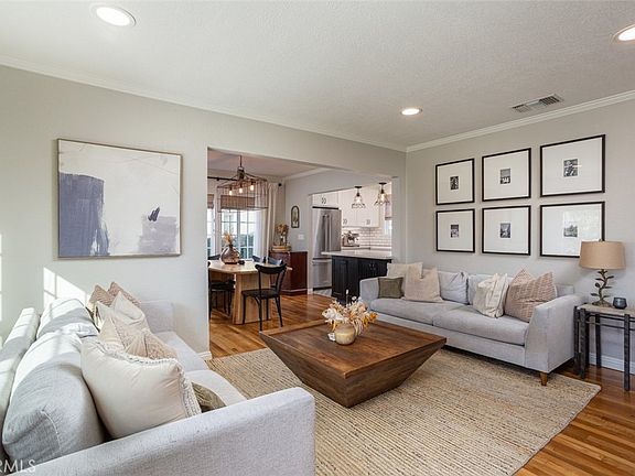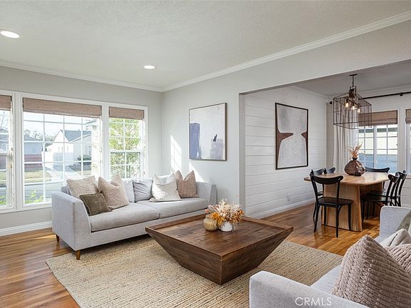 Situated on one of Lakewood's most desirable tree-lined streets, this beautifully maintained and thoughtfully upgraded home offers 3 bedrooms, 2 bathrooms, and stunning curb appeal. The meticulously landscaped exterior and extensive upgrades make this property stand out. Step inside to discover a spacious and inviting layout. The entryway leads to a bright living room and dining area creating the perfect space for everyday living and entertaining. The open-concept kitchen is a chef’s dream, complete with quartz countertops, white Shaker cabinets, a farmhouse sink, and stainless steel Samsung appliances, including a 5-burner range and built-in dishwasher. Adjacent to the kitchen is a convenient laundry area with ample storage and direct access to the backyard through elegant French doors. The expanded primary suite is a true retreat, featuring wood flooring, high ceilings, and abundant natural light. The luxurious en-suite bathroom includes a soaking tub, a walk-in shower, dual custom vanities, and a spacious walk-in closet. Two additional bedrooms offer generous closet space, wood flooring, and natural light. The secondary bathroom features a walk-in shower, high-end fixtures, and a sleek vanity. Step outside to the entertainer’s backyard, complete with a custom patio, lush landscaping, and a grass perfect for play or relaxation. Additional features of the home include recessed LED lighting, crown moldings, dual-pane windows, solar panels, shiplap accents, and an attached two-car garage. Located in the sought after Long Beach Unified School District, near parks, shopping, schools, and entertainment, this home combines style and comfort in an unbeatable location. Don’t miss your chance to experience all this exceptional property has to offer!