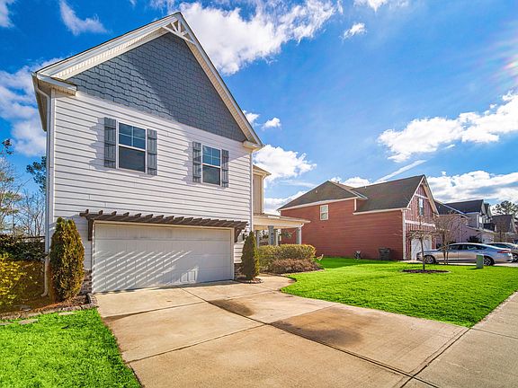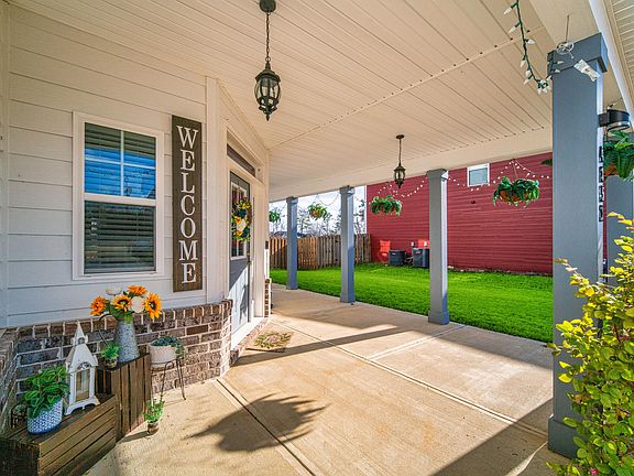Discover the perfect blend of farmhouse charm and modern efficiency in the highly sought-after Crawford Creek neighborhood! This meticulously maintained home, built in 2018, offers two main levels plus a charming single-bedroom loft on the third attic level, making it perfect for families or those in need of extra space. With 5 bedrooms and 3.5 bathrooms, the home exudes farmhouse charm with its gorgeous wraparound porch, all situated on a serene green space lot. Inside, the open floor plan boasts a large great room with hardwood floors, shiplap accents, and a gas fireplace, seamlessly flowing into a gourmet kitchen with granite countertops, a large island with pendant lighting, upgraded stainless steel appliances, and farmhouse-style crown molding. The luxurious owner's suite upstairs includes an oversized tiled shower, granite countertops, and a spacious split-side walk-in closet. Energy efficiency is a standout feature, with a solar panel system installed just two years ago fully paid off at closing.