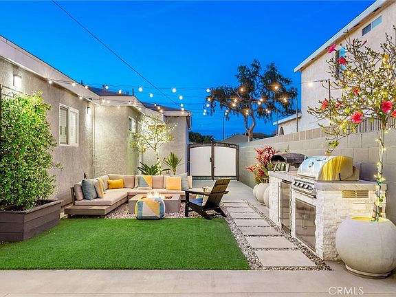 This turn-key stunner, a 4-bedroom, 3-bathroom home offers 1,831 square feet of bright, contemporary living. The open-concept living area flows seamlessly into the chef's kitchen, featuring quartz countertops, modern cabinetry, stainless steel appliances, and a large center island featuring a waterfall edge and a beverage center, ideal for entertaining. Just down the hall, you will find a gorgeous custom bar featuring a wine wall. Every detail of this residence has been thoughtfully designed for comfort, style, and functionality. Inside, you'll find a spacious primary suite with a custom wardrobe, shiplap accent wall, and a gorgeous bathroom featuring a separate soaking tub and rain shower. A second primary suite also offers an en-suite bathroom perfect for guests or in-laws visiting. The third bathroom shared by two bedrooms is perfect for kids with a bathtub and a beautiful herringbone-style tile. Enjoy the best of Southern California living with multiple outdoor spaces, professionally landscaped with low-maintenance, drought-tolerant plants, brand-new hardscaping, built-in BBQ, refrigerator, sparkling string lights, outdoor dining area, a lounging deck, and artificial turf for year-round greenery. The fully finished garage provides incredible flexibility and is currently outfitted as a stylish bonus living area—perfect for a home office, gym, or family room. With gorgeous wide-plank laminate flooring throughout, this home is truly move-in ready. Located on a tree-lined street just minutes from parks, beaches, schools, and major freeways, this is a rare opportunity to own a turnkey gem in the heart of the South Bay.