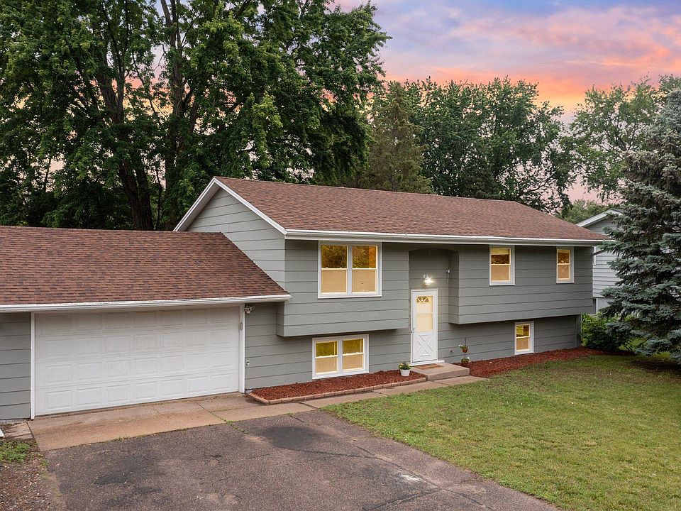 This delightful south-facing home, set on just over a quarter of an acre, is perfectly situated just a block from Centennial High School. Step inside and you are greeted with the beautifully refinished hardwood floors throughout the main level. Fresh paint and updated lighting enhance the bright and welcoming atmosphere. The main level boasts three generously sized bedrooms. The lower level features a cozy family room, two additional bedrooms, a utility room, and access to the garage. Many major replacements such as: Roof, furnace & A/C, refrigerator, washer & dryer. The fully fenced backyard, complete with chain-link fencing and a handy storage shed, offers ample space for outdoor enjoyment. This turn-key home is ready to welcome its new homeowner with open arms.