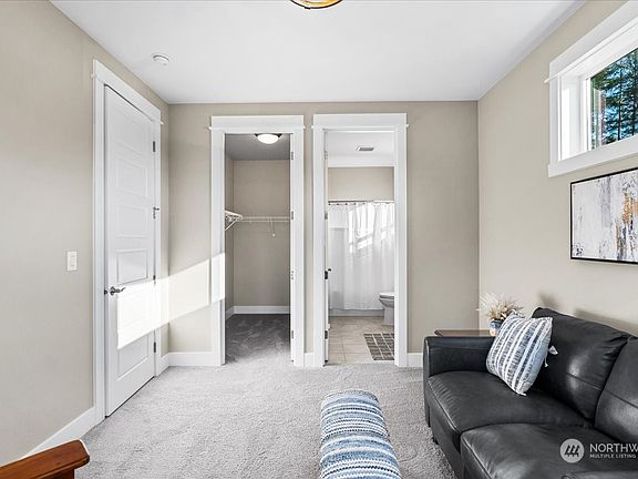 Nestled in a golf course community, this Garrette Custom Home (Willow floor plan) lives like a rambler & is packed w/ upgrades! The main floor features a primary suite w/ 5-piece bath & XL walk-in closet, plus a JR suite w/ a full bath & large walk-in closet, perfect for guests or multi-gen living. Kitchen shines w/ NEW Bosch appliances including; double wall oven, fridge & 36" cook top. Upstairs boasts a spacious bonus room & two additional bedrooms (one with an ensuite). Other upgrades; Bosch A/C, new exterior paint, fully fenced & stained, covered TimberTech deck/stairs, generator & EV charging available! Community equipped w/ 8+ miles of trails, golf course, parks, sport courts & more! Less than 20 min to Bremerton Ferries. Come see!