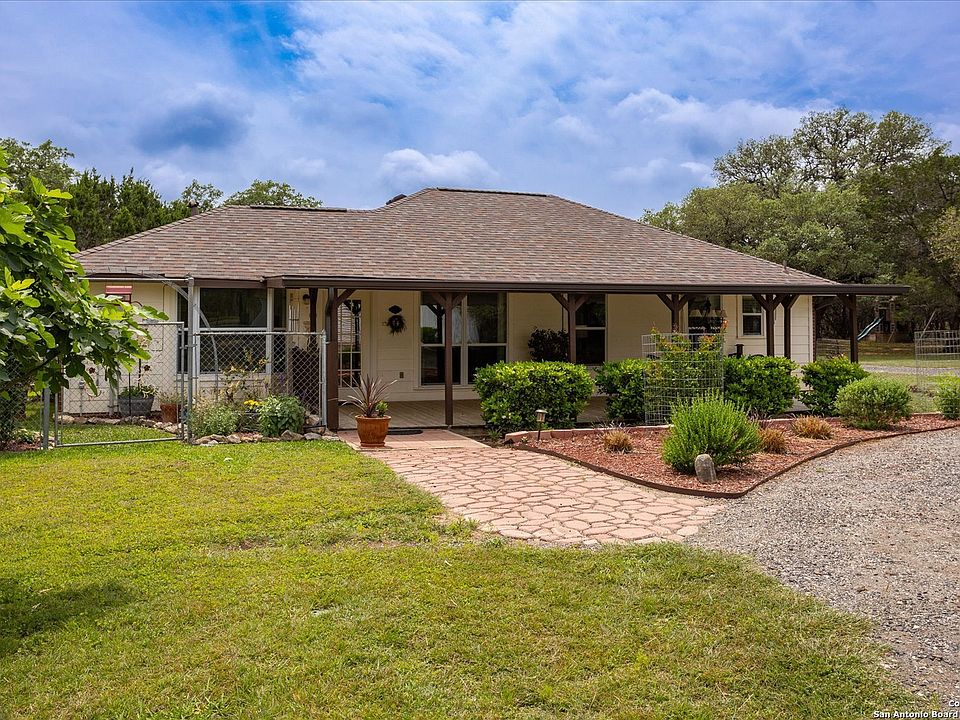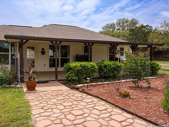 Beautiful Pipe Creek 5 acre property perfect for laid back hill country living, hobby enthusiasts and animal lovers! Well-maintained one story, 3 bed, 2 bath home with that hard to find, very usable, Hill Country acreage. Gorgeous, lovingly cared for live oaks, 30x30 detached garage & workshop with attached RV or 2 car carport to use per your needs. Custom built outdoor barbecue/kitchen setup with deck and firepit area. Array of fruit trees and beautiful rose garden for plant lovers, plus a picture perfect She-Shed/He-Shed/Hobby studio overlooking the back acreage. This lovingly cared for home boasts an open airy floor plan with ample natural light, island kitchen with granite counters and neutral paint palate. Roof fully replaced in 2022, luxury vinyl plank flooring installed throughout entire home in 2023, and 220 power added to workshop/garage. Horses allowed, and the low-cost Mustang Crossing HOA has an equestrian trail and private river park for members! A very special property with a little something for everyone. Come out and explore the possibilities!