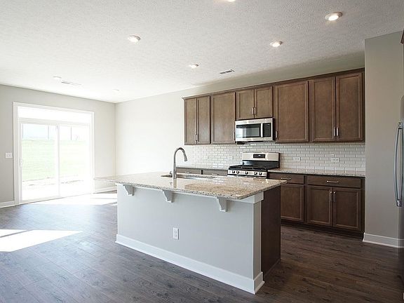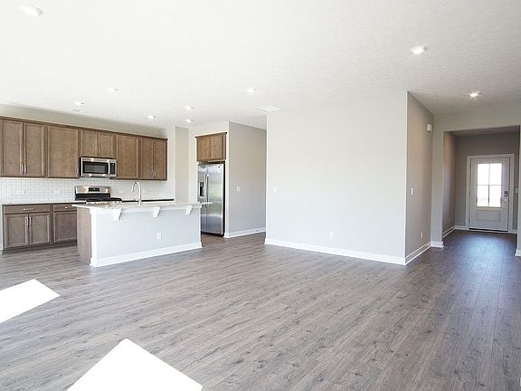 The Highland Series ranch plan boasts a spacious open-concept living space, perfect for daily living and hosting guests. The kitchen has a generously sized island, a walk-in pantry, ample cabinet space, and an expanded dining area that flows into the expansive family room, brimming with natural light. The kitchen includes granite countertops, a tile backsplash, and a stainless steel appliance package with a gas range. Attic storage is accessible in the garage. The owner’s spacious suite has an ensuite bath with a double bowl vanity, a ceramic shower, and an enormous walk-in closet. Two more bedrooms, each with a walk-in closet, a sizable second bathroom, and a convenient laundry room are all located near the owner’s suite. RevWood Select Granbury Oak flooring is throughout the main living areas and ceramic tile is installed in the wet areas. Jagoe TechSmart components are included. You’ll love this EnergySmart home!