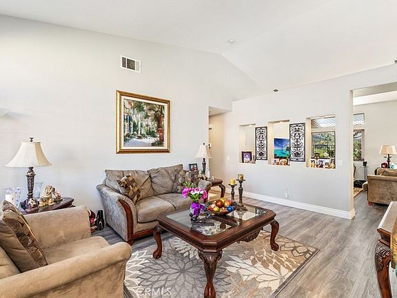 Welcome to this gorgeous 3-bedroom, 2-bathroom home boasting amazing views of Lake Rancho Viejo, ideally situated in a beautiful dual cul-de-sac location. Upon entering, you'll be captivated by high vaulted ceilings and an expansive open floor plan that floods the space with natural light. The large kitchen offers ample storage, quartz countertops, and convenient bar seating, making it perfect for entertaining. Relax in the spacious family room, complete with a cozy fireplace, and enjoy meals in the separate dining area. The home also features a living room with stylish LVP flooring throughout. Modern comforts include a newer AC and furnace for year-round comfort. Retreat to the primary bedroom suite featuring dual vanity sinks and a spacious walk-in closet. The secondary bedrooms are generously sized, ideal for family or guests. The hallway bathroom upstairs boasts dual vanity sinks for added convenience, while a large laundry room provides plenty of storage space and sink. Step outside to admire the stunning views! The backyard features vinyl fencing, a patio cover for outdoor relaxation, and a pull-down in the garage offering ample additional storage. Enjoy fantastic HOA amenities including a pool, spa/hot tub, picnic area, playground, tennis courts, waling paths around the lake and complete clubhouse. This home is conveniently located near schools, shopping centers, Pala Casino, Highway 76, and Interstate 15 freeway. Don't miss out on this exceptional opportunity. Schedule a viewing today and experience the beauty and comfort this home has to offer!