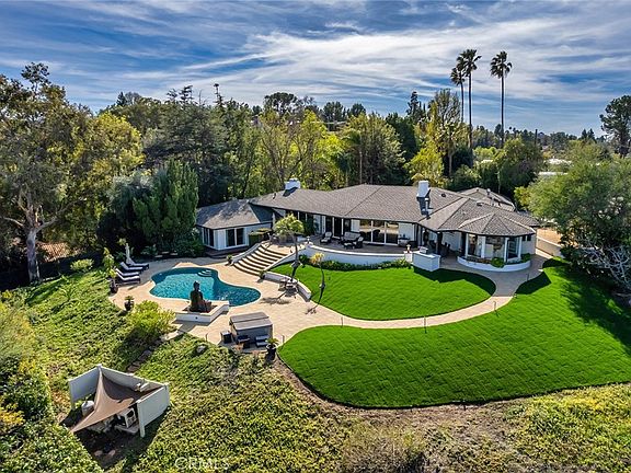 Set far back from the street and completely tucked away, this extraordinary 4,300 sq. ft. residence is a world of its own. Absolute privacy defines the property, yet the moment you arrive, the true star reveals itself: a sweeping, unobstructed valley view that will stop you in your tracks and keep you captivated from sunrise to sunset. Designed for entertaining, comfort, and effortless living, the home features five bedrooms and five-and-a-half bathrooms, with each bedroom offering its own private bath, perfect for family and guests. A long, sweeping driveway accommodates multiple cars, while two separate two-car garages provide versatile options for a private gym, a detached home office, or guest parking, blending convenience with flexibility. Step outside and your private resort comes to life: a gorgeous pool, jacuzzi, fruit trees, and your own bocce ball court create endless opportunities for fun, relaxation, and entertaining. This home comes with a vacation-like sense of ease and luxury. Move right in and start living beautifully from day one, or transform this one-of-a-kind property into the forever home you’ve always imagined. On land this rare, with views this spectacular and privacy this complete, a property like this is a rare find.