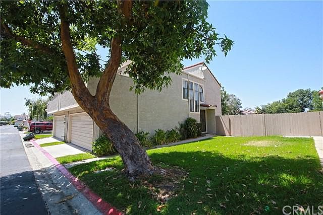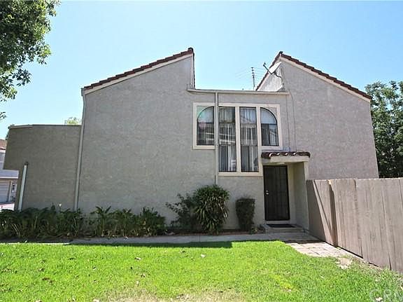 This updated duplex style 2 story townhouse is located in the Royal Palm Ranch gated community. The open floor plan features 3 bedrooms and 2.5 bathrooms. Bright unit shares one common wall with a neighbor and has lots of windows to bring nature lights in. The combined living room and dining room has sliding doors to a large enclosed back patio. The open kitchen offers a breakfast bar and plenty of cabinets. The recently updated power room is downstairs. Master suite highlighted with double doors entry, vaulted ceiling with windows, a walk-in closet, private wall AC unit and sliding doors leading to a private balcony. Two good size bedrooms offer vaulted ceilings and share a remodeled hallway bathroom with a skylight. All three bathrooms provide new waterproof vinyl flooring and new vanities with new fixtures. The laundry space is conveniently located upstairs. Laminate flooring downstairs and upstairs. Central AC and heater. 2 car attached garage with direct access. One more parking space is available inside of the community. Family friendly community amenities include a playground for kids, a gated pool and spa. Convenient location with short distance to Stater Bros market, 99 Ranch market, restaurants and shops. Easy access to freeways 60 and 71. Move-in ready.