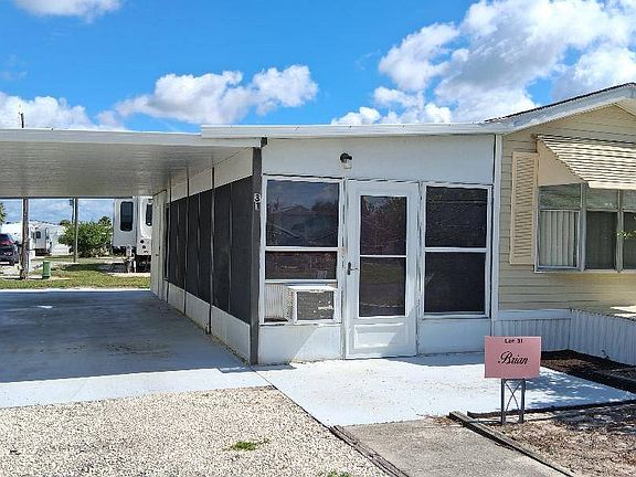 Super low lot rent in Adult 21+ community! Discover this comfy furnished 1 bedroom 1 bath park model located in a welcoming lakefront community in Wildwood, which is near The Villages. Featuring a cathedral ceiling, newer refrigerator and gas stove, updated kitchen lighting and stylish vinyl plank flooring, this home is move-in ready. Comfort is ensured with 2 new window a/c units and the convenience of an inside washer and dryer. Spacious 10 x 24 glassed in lanai with window a/c and space heater. Outside you will find an 8 x 8 shed with electricity and a carport that accommodates 2 vehicles. This friendly community offers many amenities including biking/walking trails, a fire-pit, boat slips and clubhouse. Pet friendly too-bring up to 2 dogs at 20 lbs. each. Perfectly located just minutes from Brownwood Paddock Square, one of three Town Squares in The Villages. You will have quick access to dining, shopping and entertainment. The $525 monthly Low Lot Rent covers lawn, water, sewer and trash...making this an affordable and carefree Florida lifestyle opportunity. Will not last!