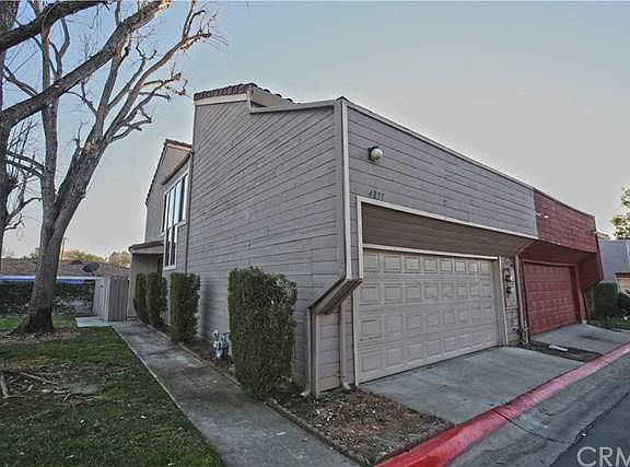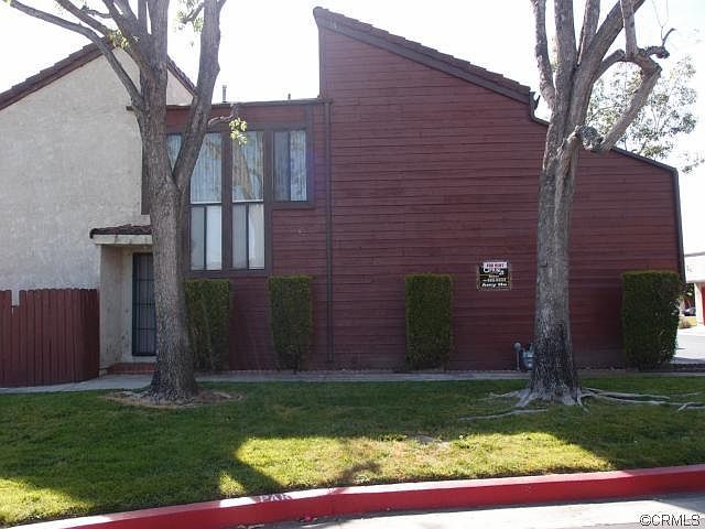 This well maintained duplex style 2 story townhouse is located in the Royal Palm Ranch gated community. The open floor plan features 3 bedrooms and 2.5 bathrooms. Bright unit shares one common wall with a neighbor has lots of windows to bring nature lights in. The combined living room and dining room has sliding doors to a large enclosed back patio. Open kitchen offers breakfast bar and plenty of cabinets. Power room is downstairs. Master suite highlighted with double doors entry, vaulted ceiling with windows, walk-in closet and sliding doors leading to a private balcony. Two good size bedrooms offer vaulted ceilings and share hallway bathroom. Laundry space is conveniently located upstairs. Laminate flooring downstairs and upstairs. Central AC and heater. 2 car attached garage with direct access. One more parking space is available inside of the community. Family friendly community amenities include playground for kids, gated pool and spa. Convenient location with short distance to Stater Bros market, 99 Ranch market, restaurants and shops. Easy access to freeway 60 and 71. Move-in ready.