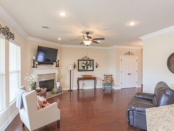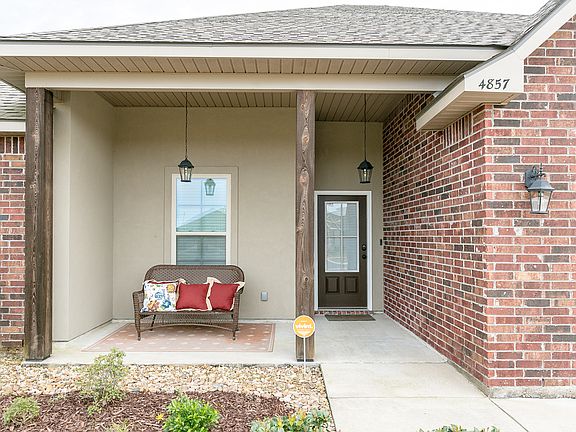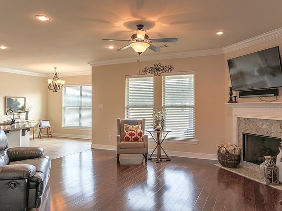City convenience, country feeling at this better-than-new Oak Grove subdivision home. Updates, from the one-owner, include lighting, ceiling fans in all rooms, outside gas hookup, eaves with plug ins (garage is control central for them), and HDMI and optical cable. Wave to your neighbors from the front porch. Inside wood floors gleam in the living areas and master bedroom. 3 additional bedrooms are carpeted for sound reduction and comfort. Tile in all other rooms. Gas fireplace graces the corner of the living space. Stainless appliances and granite in kitchen with a huge pantry. Master suite has two walk-in closets and separate soaking tub and shower. Outside you'll find the biggest yard on the street nestled in the gentle curve of the side-walked neighborhood. Decked attic and covered patio too. All measurements are more or less.