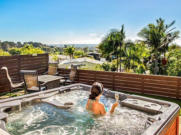 Wake up to San Diego sunshine and end your day with a front-row seat to SeaWorld fireworks, visible from the backyard windows.