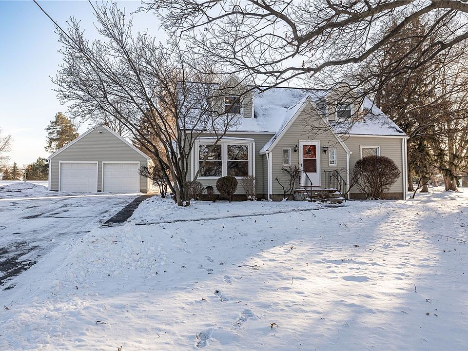 Welcome to this well maintained 4 bedroom, 2 full bath cape cod located on a 1.10 acre lot in the town of Parma within the Spencerport school district. This home has all new vinyl siding and gutters - November 2025. Roof -2014. Water Heater –approx. 2022. All windows have been replaced within 7 years including the 1 yr. old front living room window. The updated kitchen offers a generous amount of cabinet and counter space and includes all appliances (Stove, Microwave, & Dishwasher - 2yrs & Refrigerator - 2025). You will find 2 bedrooms and a full bath on both floors. Huge primary suite with 2 closets and a full bath. Laminate floor throughout the 1st flr. and wall to wall carpet on the 2nd flr. Both bathrooms have been updated. Glass block windows in the basement. 150 amp electric service. Set back from the road, this home offers an inviting open covered porch overlooking the expansive lot with an oversized 2+ car garage with a loft and attached shed—perfect for storage, hobbies, or a workshop. Conveniently located close to the villages of Hilton and Spencerport, shopping, restaurants, and expressways.