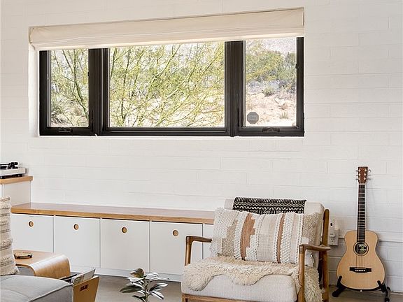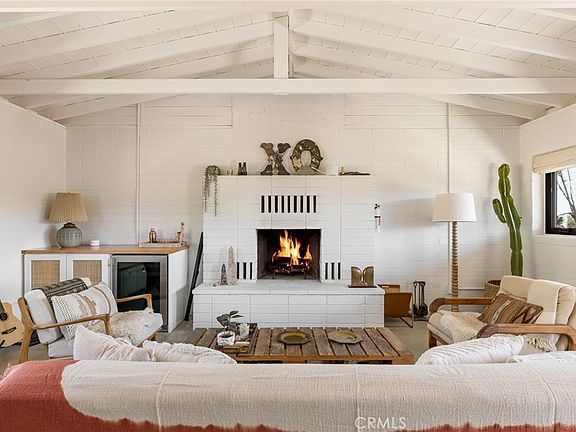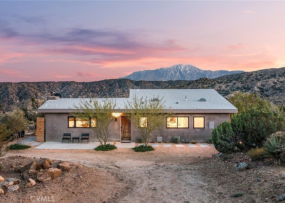 Spectacular mid-century-meets-modern home on 3 parcels spanning 10 lush verdant acres. Dramatic mountain views envelope you from all directions in this beautifully restored property, highlighted to the south by the majestic peak of Mt San Jacinto. Only 20 minutes to Palm Springs or Joshua Tree, this compound is the perfect starting point for exploratory adventures - though you may never want to leave. Owned by artists and designed with full-time livability in mind, this home underwent a complete renovation in 2022, adding a primary bedroom, oversized bathroom, and bonus 300 sq ft sleeping loft with mini-splits throughout the home for year-round climate control. The spacious bedroom features a walk-in closet and built-in office nook with a wall of glass sliders inviting you to take in the striking panoramic views. Down the hall you’ll find a hidden stackable washer & dryer and a spa-like bathroom with venetian plaster, dual sinks, a soaking tub, a shower room, and a separate water closet across the hall so your spa session will never be interrupted. A ladder leads upstairs to a secret sleeping loft with more epic views, making a delightful guest bunk or a quirky clubhouse for the kids. The original block cabin is now an open-concept living area with walls of windows, a wood-burning fireplace, dining area, a renovated kitchen with copper plumbing, new quartz countertops, and a hidden under-counter refrigerator. A 384 sq ft covered patio spans the rear of the home, leading to a spacious open-air lounge area with a gas grill, fire pit, and built-in hammocks to unwind after a day of sight-seeing. Follow the path down to the most instagramable moment of them all - a raised wooden bathhouse with 2 freestanding vintage clawfoot tubs inviting you to enjoy a hot soak framed by another magnificent view, each somehow more impressive than the last. An original 1968 Silver Streak trailer potentially serves as another fabulous guest space or home office. This turnkey property generated over $54k as a short term rental in 2024, not to mention all those unforgettable sunsets and priceless memories. Special properties like this come on the market once in a lifetime, don’t let this one slip away!
