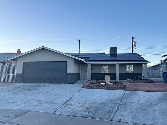 Beautiful single-story home that offers 4 bedrooms, office/entertainment room, 2 full bathrooms, 2 car garage with an open space concept! Home has several windows that give beautiful natural lighting with 1848 sq. ft of living space, making it one of the biggest properties on the street. Plenty of parking space on the driveway as well. Fresh paint and comes with new dishwasher, refrigerator, stove, microwave and indoor washer/dryer. Home has a beautiful backyard great for family gatherings and entertaining! No HOA and the added benefit of solar panels, greatly reducing the cost of you're energy bill especially in the summer, critical for Vegas living! 1 year lease with an automatic lease renewal available and no pet fee.