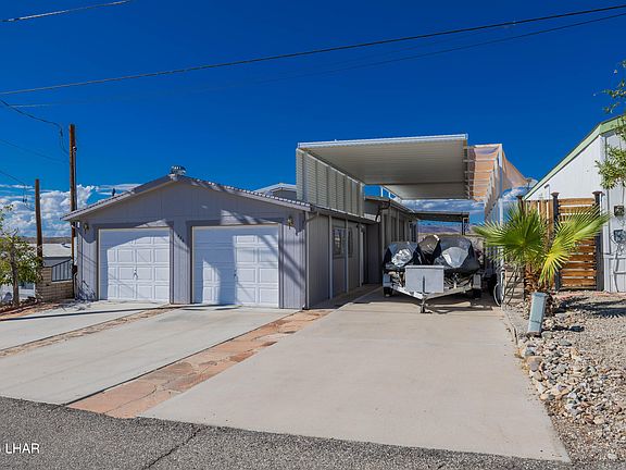 On leased land, with a Zero Lease, No HOA and No Property Taxes. Don't miss this beautifully maintained river view property that truly shows pride of ownership. Featuring an open floorplan with new flooring, new vanities in the bathrooms and fresh exterior paint, this home is move- in ready and designed for comfort and style. Outside is a covered patio where you can enjoy stunning views of the river-perfect for relaxing or entertaining. The spacious 24x24 garage and RV carport with full hook-ups offer plenty of room for all your toys with ample parking available. A unique bonus is the easy-access under-home storage area, accessible directly through the garage, with enough head room to stand and move around, it's ideal for keeping all your gear organized and within reach. Community amenities include a private launch ramp, beach access, swimming pool, clubhouse and gated security. This is a must-see property-Schedule your showing today!