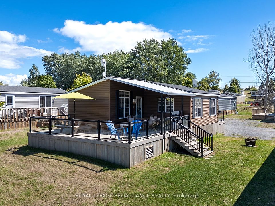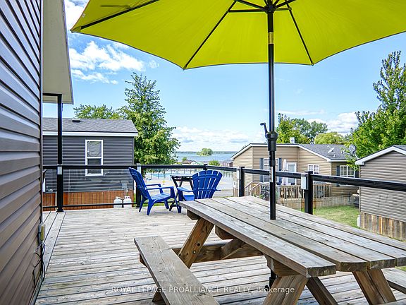 ***This mobile unit is located on a Seasonal land lease resort*** --Purchase price not subject to HST. A rare 2015 Willow Model, the Pinnacle of Cottage experience. Stand out from the crowd in this 3 bed 2 bath unit perfect for a big family or savvy investors looking for a good Short term accommodation opportunity. Enjoy the morning sun on your front deck and sunset on the partially covered rear deck with panoramic views of the pool, lake and park. If owning one of the bigger units was not enough, imagine having the lowest fees in the resort to go with that! Located 2 and 1/2 hours from Toronto and just under 4 hours from Montreal (yes there are lots of owners coming from both cities). The resort is located minutes from Picton, Sandbanks, Base 31 and the Outlet river granting access to Lake Ontario. The resort is open from May 1st to October 31st. Annual fees of $8,040.00 + HST are payable in 2 installments, 1st installment due on Nov 1st and 2nd installment due on April 1st. Fees include the following (Lot occupation fee, water & sewer, lawn care, hydro, resort amenities like: Multi-Sport court, rec plex, Chlorine water heated pool, beach, splash pad, playground, events and more).