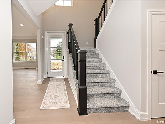 COMPLETED NEW CONSTRUCTION ready for occupancy. Enjoy 9-foot ceilings, wood floors, gracious gathering spaces, and a rare walkout lower level with tall ceilings, large windows, and plumbed for a bath. The lovely two-story foyer welcomes you and leads into a bright living room with 9-foot ceilings, recessed lights & crown moldings. The beautiful kitchen boasts white cabinets, quartz countertops, a large breakfast island, & a walk-in pantry. The spacious family room off the kitchen is perfect for entertaining or relaxing, featuring a gas fireplace & vaulted ceiling. Enjoy family meals and parties in the open dining area, featuring an 8-foot door wall overlooking peaceful views of nature. You will love the convenience of a main-floor laundry room & the custom mudroom off the garage foyer. Additional features include four generous bedrooms upstairs, including a primary suite with a spa bath & walk-in closet. This special home has Anderson windows, a high-efficiency furnace, a 50-gallon HWH, an attached two-car garage, situated on a private ravine setting with a pretty wooded backdrop, making it a property to be envied.