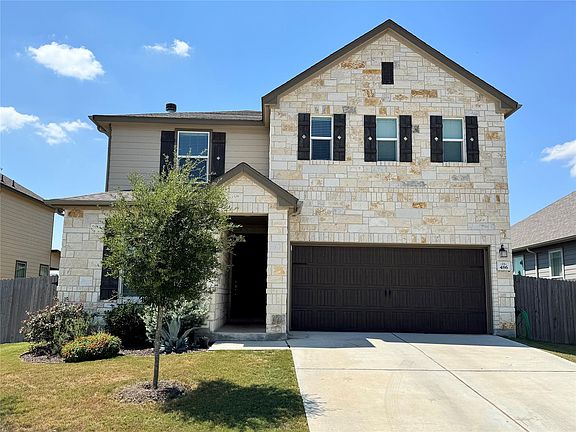 Beautiful two story home in Grist Mill. Four bedroom, 3 bathroom with spacious island kitchen, two car garage. Primary and two guest beds upstairs, one guest bedroom and bathroom downstairs. Two car garage. Home is located just across the street from the community park. Hays CISD.