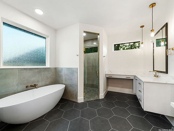 Welcome to your dream retreat nestled in the serene landscapes of a gated community, where contemporary sophistication merges seamlessly with the rustic charm of the hill country. Step into luxury as you enter this brand-new construction home complete with top-of-the-line hardware, finishes and stainless steel appliances. The open floor plan invites you to explore two expansive living areas, perfect for entertaining guests or simply unwinding with loved ones. Situated on a one-acre lot, this property boasts the tranquility of mature trees offering shade and privacy. Ample parking is provided by a spacious three-car garage, accompanied by a separate garage/workshop space, ideal for storing outdoor equipment or pursuing your hobbies. High ceilings throughout the home create an airy atmosphere, while front and back porches offer inviting outdoor spaces to enjoy the natural beauty that surrounds you. Don't miss the opportunity to make this stunning property your own retreat from the everyday hustle and bustle.