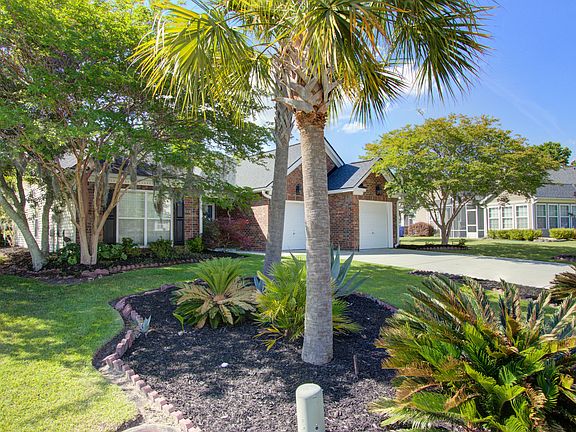 Having trouble finding a one-story home? Well this is it! Welcome to your new turnkey home with numerous upgrades and features plus tranquil pond views. Discover comfort, style and a flowing floorplan great for entertaining. The open-concept layout features hardwood floors, soaring ceilings in dining area, family room and primary bedroom, stylish lighting, a cozy gas fireplace, in-ceiling speakers, built-in shelving, fabulous decorative tile flooring and expansive windows that flood the space with natural light and showcase beautiful pond views. The gourmet kitchen is a chef's dream, equipped with premium KitchenAid appliances, including a gas range and a brand-new dishwasher, stunning Quartzite counters, a stylish tile backsplash, a deep sink, abundant white cabinetry with aconvenient built-in desk area perfect for work, homework or organizing everything from recipes to daily life. The eat-in area is currently being used as a sitting area and leads to a bright sunroom with brand new tile flooring- the ideal place for that morning cup of coffee. Step outside to your backyard oasis where you'll find a large 18x22' stamped concrete patio with a 12x14' amazing gazebo with cedar posts, a mounted television, ceiling fan and retractable shades with hook wands on 2 sides. In addition, garden lighting enhances the ambience by adding warmth and charm after sunset. Whether watching the game with some friends or just enjoying the pond views, this space is sure to please. The aluminum fence was installed in 2023. Lush landscaping including palmetto trees, Japanese maples and crepe myrtles accent the front and back yards and there is landscape lighting in the front yard. The front and back flower beds have an irrigation system. Back inside, the spacious primary suite features a large bay window offering sparkling pond views, a vaulted ceiling with in-ceiling speakers plus an upgraded spa-like primary bath in 2022 with Carrara marble countertops, porcelain tile flooring, an 8-foot walk-in shower with Carrara marble flooring, newer hardware, double sinks, a linen closet and an in-ceiling speaker. Additional highlights include a stylish guest bath with Quartzite counters, decorative tile flooring, mirror and new hardware situated between two nice sized secondary bedrooms. The laundry room features amazing tile flooring and lots of shelving- ideal for laundry items or extended pantry storage. This home also has a whole house water filtration system. The finished true 2 car garage adds extra value with new openers, cabinetry, and a stainless utility sink for added convenience. The water heater was installed in 2024. This highly sought after neighborhood offers a pool and playground just a short walk away and Bees Landing Recreation Center is less than a mile away offering tennis, pickleball, a playground, ball fields and more. Need groceries or coffee--that's just a short golf cart ride away. Whether you're upsizing, downsizing, or right-sizing, this home offers something for everyone. Schedule your private tour today and experience single-story living at its finest!
