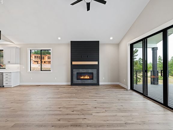 This stunning Coastal Modern Daylight Ranch, located in the newly developed "Highlands at Manzanita" subdivision, boasts modern finishes throughout, including exquisite quartz counters and stylish LVP flooring. The primary bedroom is complete with a double sink vanity, a luxurious soak tub, a separate tiled shower, and a spacious walk-in closet. The vaulted great-room in this home creates a spacious and airy atmosphere, enhanced by a cozy gas fireplace and slider doors that lead to a covered vaulted deck where you can enjoy partial view of Nehalem Bay all the way towards Twin Rocks. This seamless transition from the indoor to the outdoor living area allows for easy entertainment and relaxation. The great-room opens up to the dining area and kitchen, providing a harmonious flow throughout the space. The kitchen is highlighted by a stylish island, a convenient pantry, and modern stainless steel appliances. Downstairs features a Family Room with fireplace and sliding doors to the covered patio and backyard. There is also a bedroom and full bath. The convenient location offers proximity to both the town and the beach. Home is 100% complete!