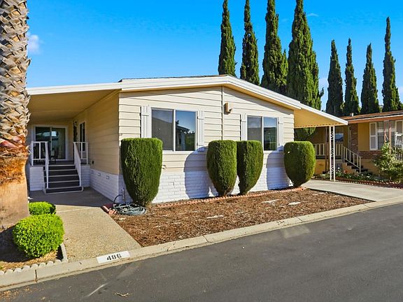 Don't miss this beautiful updated home located in the highly desirable Millpond Mobile Home Park, a 55+ senior community in San Jose! Offering approximately 1,500 sq. ft. of living space, this home features a fabulous floor plan with 3 bedrooms and 2 fully renovated bathrooms. Enjoy fresh interior & exterior paint, a bright living room and separate family room filled with natural light, recessed LED lights, and brand-new laminate flooring throughout. The kitchen includes plenty ample cabinet space, brand new quartz countertop, and brand-new stainless-steel appliances. Both hallway bedrooms are generously sized with easy access to the hall bathroom. The primary suite boasts a large walk-in closet and an updated en-suite bathroom with a new vanity, and an updated walk-in shower. Residents enjoy access to a clubhouse, swimming pool, community events, and beautifully maintained common areas. This peaceful, friendly neighborhood is ideally located near shopping, restaurants, Downtown San Jose, Willow Glen downtown, and major highways. With affordable space rent and a relaxed, low-maintenance lifestyle, this home is perfect for a first time homebuyer or someone looking to downsize and call this place home!
