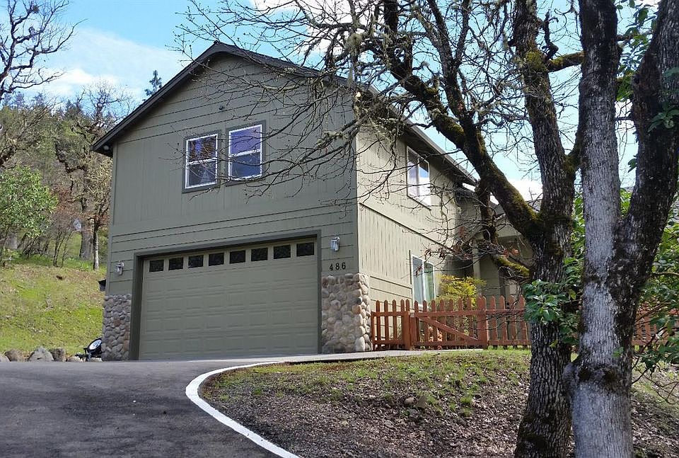 Beautifully maintained 2 story style home situated on a private 0.58-acre on the edge of town with great curb appeal. Great floor plan with 4 bedrooms, 3 bathrooms, with master bed & bath down stairs & an additional guest bedroom downstairs. The upper level has 2 additional guest bedrooms with 3rd bath and an additional family with bonus area/den overlooking the main level. Beautiful Kitchen w/granite counters, hardwood cabinets, breakfast bar, pantry and open to the dining room with lots of natural light and open to the vaulted great room and certified wood stove for lots of warmth. Other features include: beautiful wood floors in the great room & dining room, solid core doors, tile floors in the entry, bathrooms & utility room. High vaulted ceilings & plant shelves, lots of windows with tons of natural light. Enjoy the large covered front patio with nice views (great for entertaining. Rear patio off the dining room. Paved driveway with RV parking. Home is move in ready!
